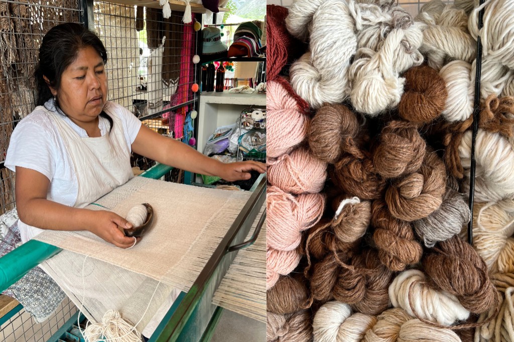 Me llamaron la atención las madejas de lana de llama de hilados finos y suaves, en colores naturales, que le compré para traer al local. Suelo tener exhibidas lanas de distintos sitios para que los clientes aprecien las diferencias en textura y grosores. Aurelia me comenta que la lana de llama tiene mayor elasticidad que la de oveja y que por ese motivo no las combina en la urdimbre y trama del telar.